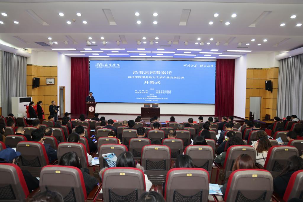 3月28日下午,由宿迁学院联合宿迁市文旅集团、宿迁市社科联、宿迁市文广旅局主办的服务地方文旅产业发展产学研对接活动在求索楼报告厅隆重开幕。本次活动以“沿着运河看宿迁”为主题,旨在构建“生态共建・成果共育・价值共生”的合作机制,携手打造校地融合发展示范样板。校党委常委、副校长丁红燕,校党委常委、副校长章程,宿迁市文旅集团总经理陈飞出席活动,开幕式由宿迁学院党委常委、副校长章程主持。