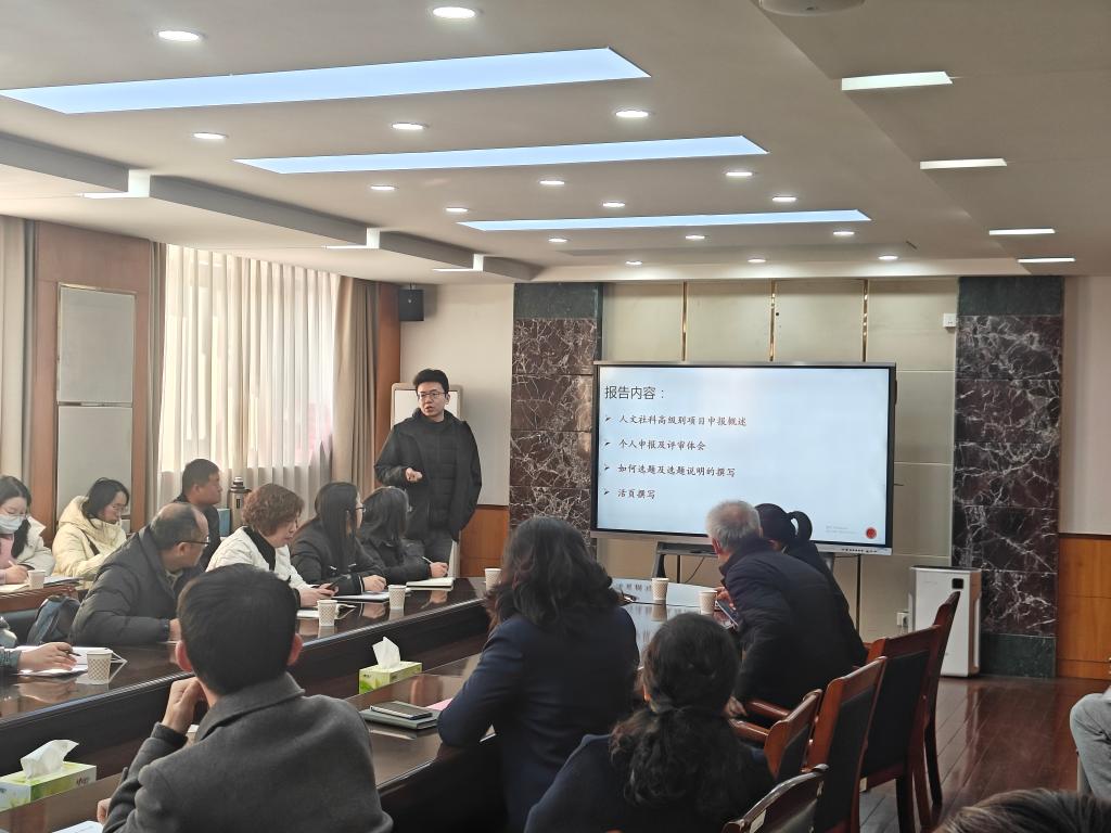 为扎实推进2026年国家社科基金项目、教育部人文社科研究项目申报工作,提升申报质量,12月17日下午,我校在行政楼二楼会议室召开专题辅导会。南京信息工程大学社会科学处副处长朱光教授应邀主讲,2025年度校高级别纵向科研培育项目负责人、2026年国家社科基金项目及教育部人文社科研究项目申报人及社科处工作人员参会,经济管理学院科研院长吴英晶主持会议。
