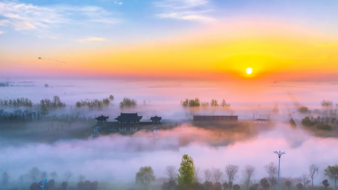 斜日一轮,半山晴翠。江苏“运河百景”——三台山国家森林公园是国家4A级旅游景区、省级森林公园、省级风景名胜区。景区占地面积12.7平方公里,树木古朴葱茏,蓬勃参天,森林覆盖率达98%,负氧离子含量高达2万每立方厘米,是宿迁城市“氧吧”。春日梦幻顶流“梨兰会”、2220亩浪漫花海,冲霄的天和塔、明净的镜湖水、清幽的雾森栈道,也成为宿迁运河畔最美文旅IP。