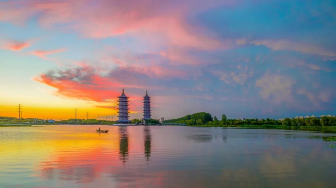 大运河、古黄河宛如两条玉带在主城区自西向东流淌,两河之滨、两河沿岸皆风景秀丽、宛如画卷。黄河故道宿迁段全长113.6公里,沿线建有河滨公园、古黄河水景公园、雄壮河湾公园、双塔公园、酒都公园、全园、英雄园等主题公园。繁忙的大运河、宁静的古黄河不仅承载着宿迁厚重的水文化记忆,更诠释着今日城河共生互美的和谐理念。